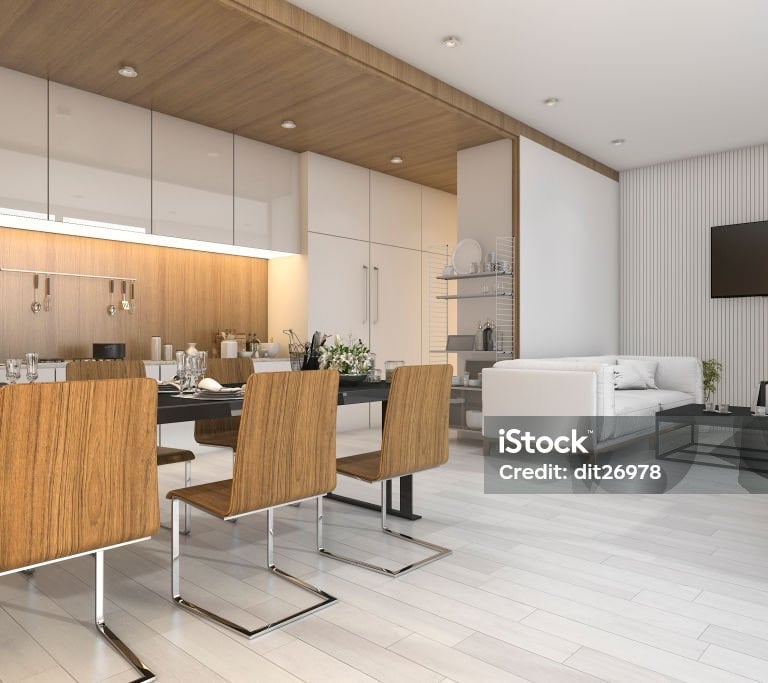 Clean lines meet rich wood tones.